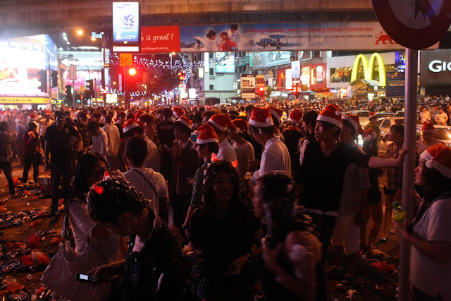 Arrive at Bukit Bintang around 10pm. Jalan Jem Gile. but its wukey, redah saje. At first, we think it would not be so crowded because people should sat at HOME with their family, dinner together and doing STUFF that should people do during Christmas like... waiting santa at home, or help their moms baking cookies and pour some milk for santa during late-nite. BUT otherwise happened... and we want to share the experience with you guys! and girls of course :)